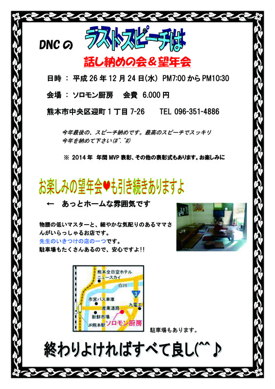 今年最後の、スピーチ納めです。最高のスピーチでスッキリ今年を納めて下さい。