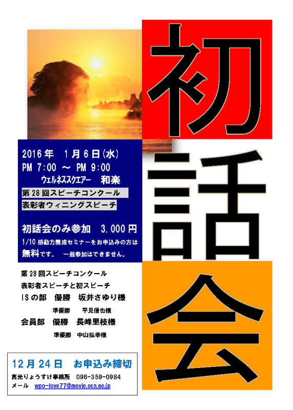 2016年 1月6日(水) 初話会 第28回スピーチコンクール表彰者ウィニングスピーチ