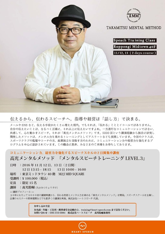 2016年11月12日・13日 @ 東京 スピーチスキルの2日間集中講座『メンタルスピーチトレーニング LEVEL.3』